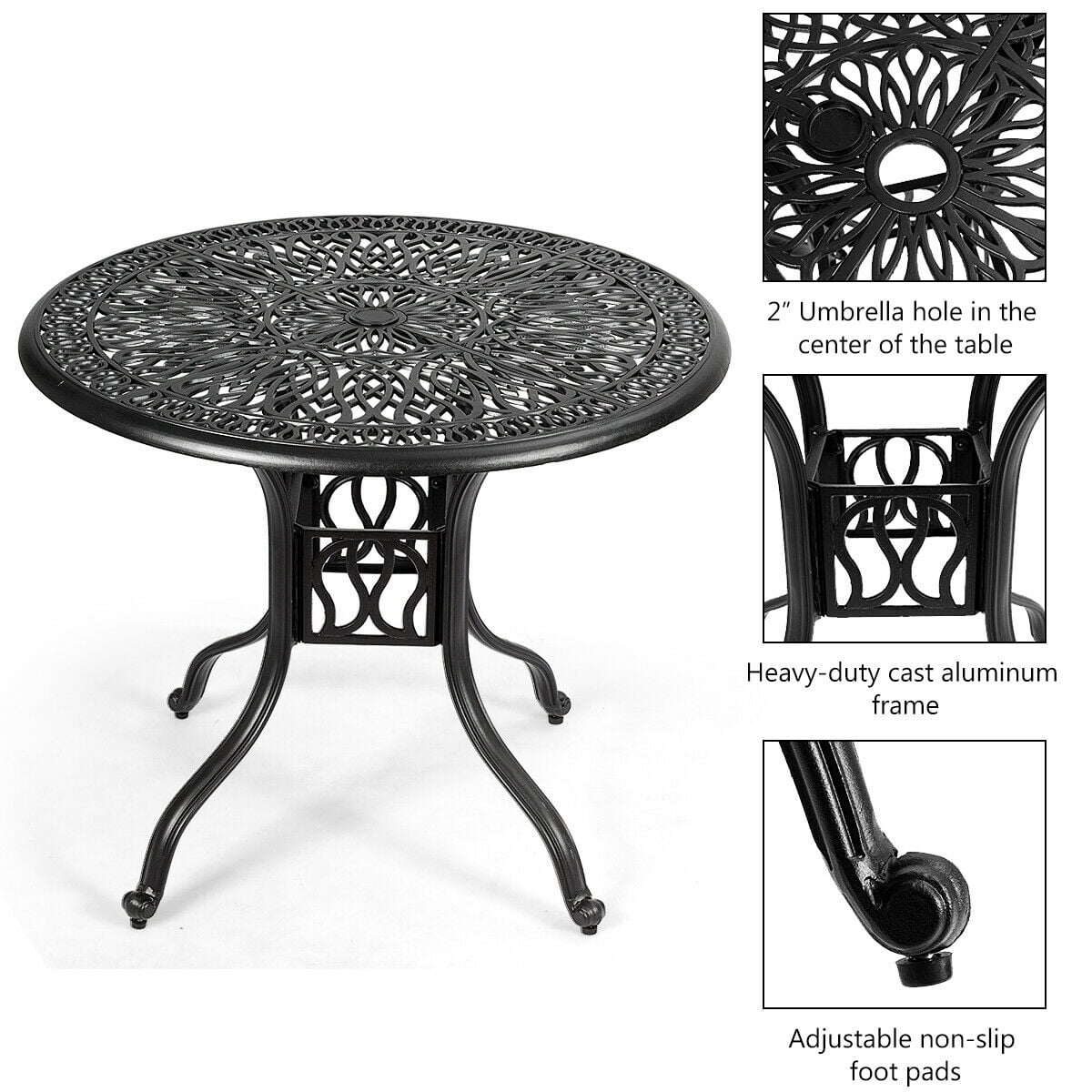 Topbuy 36 Patio Round Cast Aluminum Table Dining Bistro Table With Umbrella Hole Walmart Com Walmart Com from i5.walmartimages.com I had a charge on my credit card for a product for about 30 days before they actually shipped the table. Now you can shop for it and enjoy a good deal on. Pair it with other items from the sterling collection like a chair or chaise lounge for a complete look. The addition of a patio table or a picnic bench can elevate your backyard to a warm and inviting area if you're going to be using your bistro table in a sunny area, consider buying a table with an umbrella to help keep your family and friends cool when the temperatures start to rise. Additionally, this patio umbrella with large shade is great for garden, backyard, poolside and beach. Also with design with an umbrella hole, more practical. Topbuy giantex 36 patio round cast aluminum table dining bistro table with umbrella hole. 32 patio round table tempered glass top w/ umbrella hole steel frame.