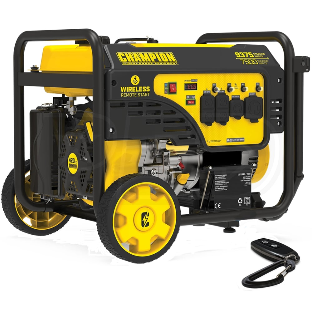 Generators with electric start are much more convenient to use, and this feature comes in handy when you do not want to stand in the rain or snow for 5 minutes trying to yank on the starter cord of your generator. This generator with remote start system makes your life easier as it adds the cold start technology that ensures a quick start during the cold weather. Portable generator champion 100423 operator's manual. With a 25 litre fuel. Remote start generators are essentially electric start generators with a key fob that allows you to start the generator from further distances. The most attractive feature of the champion 75537i inverter generator is its wireless remote starter. If you have an additional remote, press the start button on it as well. Champion power equipment manufactures and sells accessories. Champion cpg6500 5500 watt petrol generator remote start uk spec new portable. All are programmable to any champion machine using the wireless receiver. What's more, champion intelligauge monitors frequency, voltage, and operating hours. 6 benefits of wireless remote start generators. The wireless remote start lets you start the generator from up to 80 feet away with the included key fob, so you can be inside your shop or rv camper and even though it's an inverter remote start generator the champion is still parallel ready.